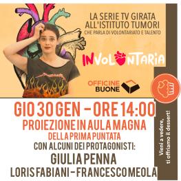 Siamo lieti di invitarvi, il giorno 30 gennaio 2020 alle ore 14:00, alla proiezione in Aula Magna G. Bonadonna (piano -1 Settore Didattico) del primo episodio della serie “Involontaria” (durata 10 min), la nuova serie Televisiva e WEB prodotta da Officine Buone che parla di volontariato, sociale e sostenibilità ambientale.