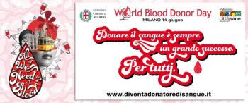 La giornata mondiale dei donatori di sangue, istituita dall’Organizzazione Mondiale della Sanità - e quest’anno assegnata all’Italia - ha come slogan “Give blood and keep the world beating” (dona sangue e fai battere il cuore del mondo). Per celebrare questa ricorrenza si svolgerà, a Milano, l’evento simbolico “All we need is blood”, che prende spunto dalla campagna realizzata dalla rete di Associazioni di donatori di sangue cittadine e promossa dal Comune di Milano e dalla Rete Città Sane. Nove ciclisti che rappresentano le 9 Associazioni di donatori milanesi consegneranno nove bandiere all’Assessore alle politiche sociali Gabriele Rabaiotti e a questi verrà donato un riconoscimento da parte del Comune.