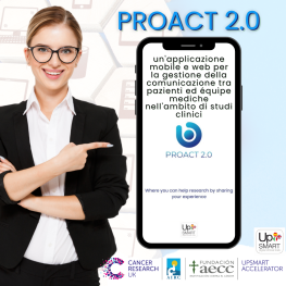 PROACT 2.0 rappresenta per il paziente un modo alternativo di comunicare con i medici e gli infermieri di riferimento. L'App consente agli utenti di inviare messaggi di testo, vocali e video, che saranno visualizzati dall'équipe medica. PROACT 2.0 consente ai medici di inviare questionari programmati o su richiesta ai pazienti arruolati negli studi.