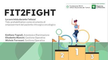 Il progetto Fit2Fight mira ad introdurre la prehabilitation all’interno della pratica clinica per i pazienti oncologici attraverso programmi personalizzati che prevedono una combinazione di esercizi fisici e/o aerobici eseguibili a domicilio. Il tutto viene gestito con la piattaforma di Telemedicina dell’Istituto attraverso un diario digitale personale e l’integrazione con dispositivi wearable di tipo smartwatch. Il progetto, sviluppato dall’Anestesia e Rianimazione (Emiliano Tognoli) e dalla Gestione Operativa (Elisabetta Mancini, Michele Torresani) dell’Istituto, è ora in fase di sperimentazione e di attenzione per ulteriori sviluppi.